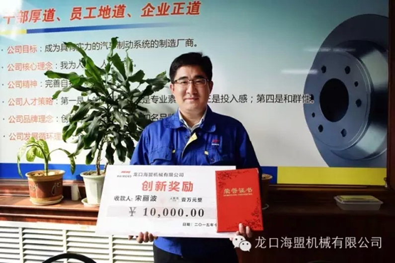 他是一個聰敏好學、善于鉆研,腳踏實地又敢于創(chuàng)新的人,他善于觀察、善于從不同角度拓寬思路,從而解決工作中存在的實際問題;2015年10月,他在工作中的一個創(chuàng)新(一種可加工孔,又可對孔兩端進行倒角的新型刀具)獲得國家專利授權,這項專利在公司應用后,將原來需要用2臺設備、2次裝夾才能完成的工作,減少為僅需一次裝夾、一支刀具就可完成的簡單工作。他就是公司技術部副經(jīng)理宋麗波。因他發(fā)明的專利技術大大降低了員工的勞動強度、提高了工作效率和加工精度,為公司節(jié)約了大量的生產(chǎn)成本,公司給與他個人10000元人民幣的物質(zhì)獎勵。