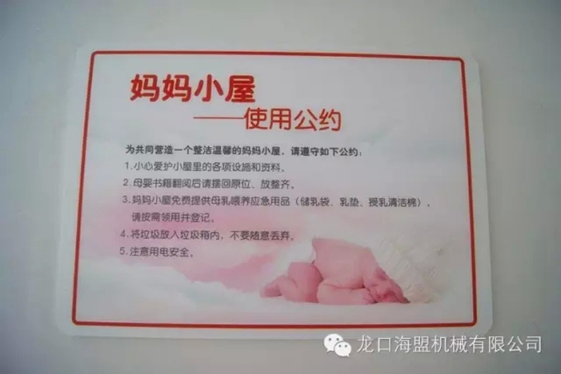 公司為貫徹落實《女職工勞動保護特別規(guī)定》,加強公司女職工“四期”保護(經(jīng)期、孕期、產(chǎn)期、哺乳期),妥善解決女職工在生理衛(wèi)生、哺乳方面的困難,維護女職工的特殊權(quán)益,按照全總、省總工會工作要求,海盟公司工會在市總工會的帶動下,對公司原“喂奶房”進一步完善,重新更名為“愛心媽媽小屋”,現(xiàn)位于公司一場區(qū)1號公寓樓一樓101,為處于孕期、哺乳期的女職工提供人性化的溫馨服務。
