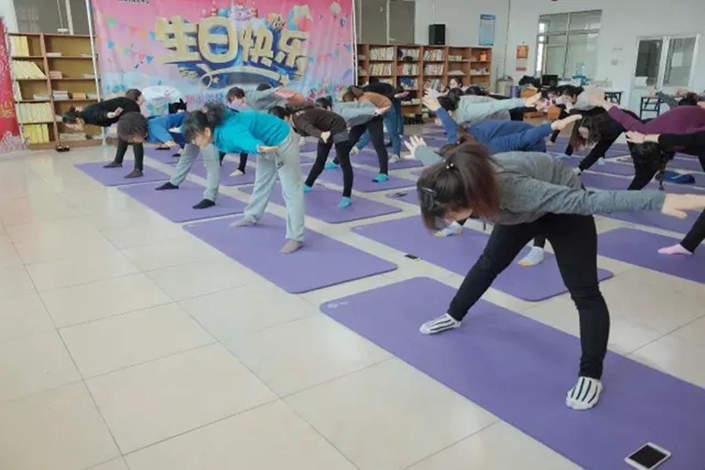 公司為了增進女職工之間的交流,加強團隊凝聚力,促進團隊和諧發展,緩解緊張的工作氣氛,為廣大女職工安排了舒緩身心的瑜伽課程。