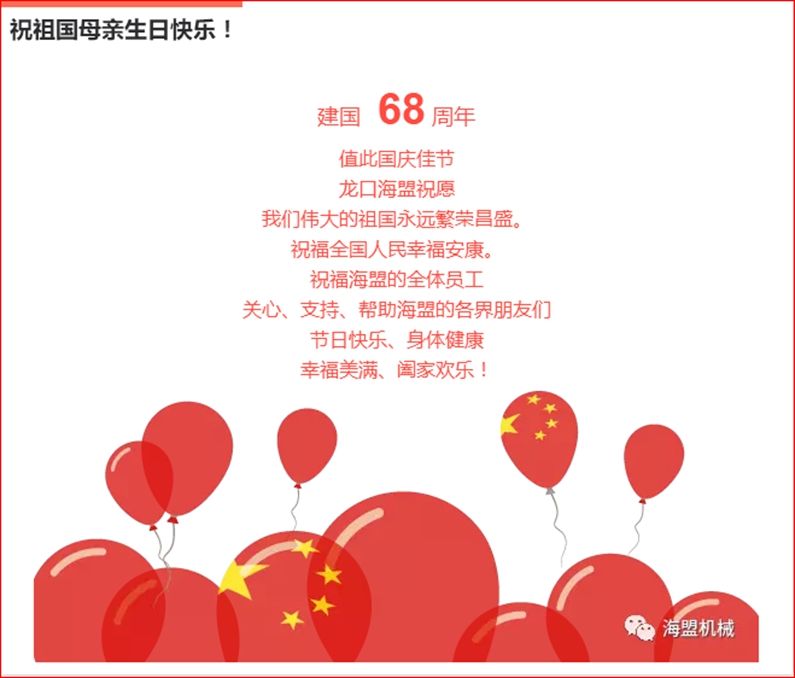 海盟祝祖國母親生日快樂,祝大家國慶節快樂!