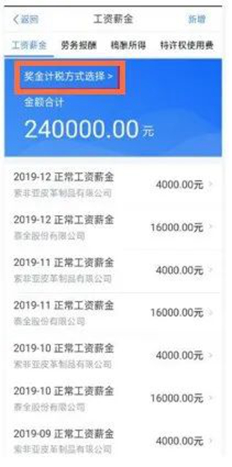 4.進入標準申報頁面,點開【工資薪金】--【獎金計稅方式選擇】